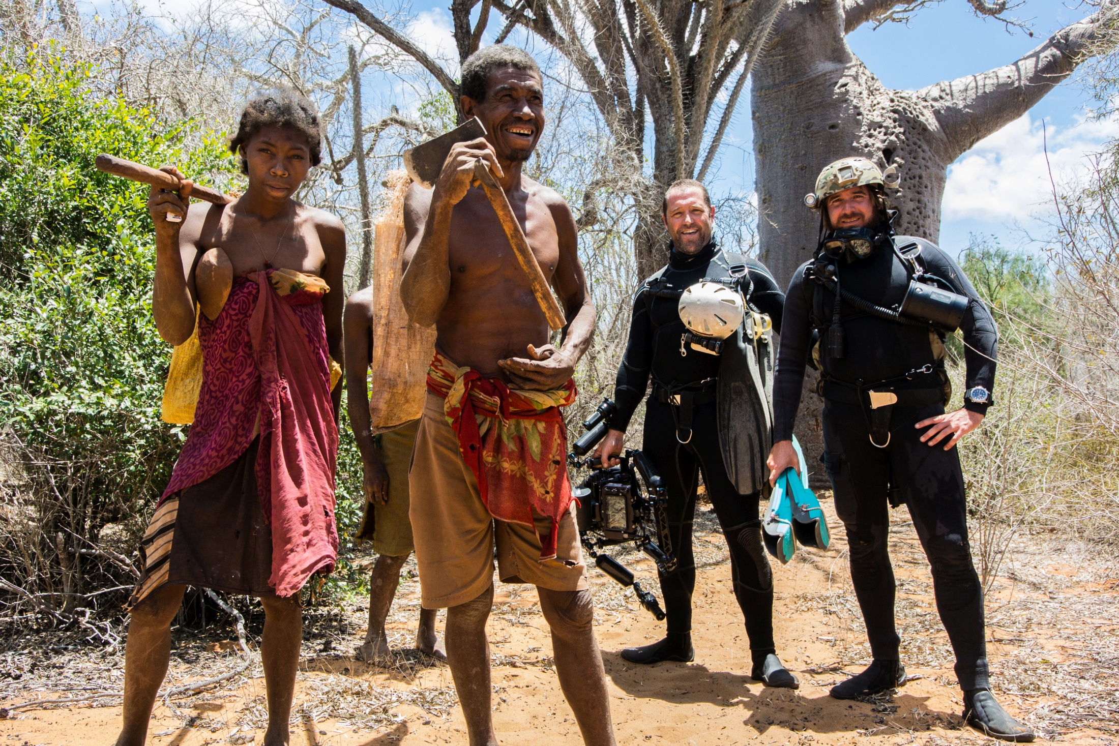 There was a rumour of caves existing 80 km north of Tulear in Madagascar. Once the initial projects were completed and the rest of the team returned home, Philip, Ryan and Patrick braved a nine hour 4x4 drive through Madagascar’s most remote, although beautiful deserts. Not knowing if they would have to sleep in the cars the team managed to connect with Pierrot, a swiss national who was the epitome of hospitality. Pierrot was also able to introduce the team to Chief Fahazoa who would be key to being allowed to enter the sacred caves.