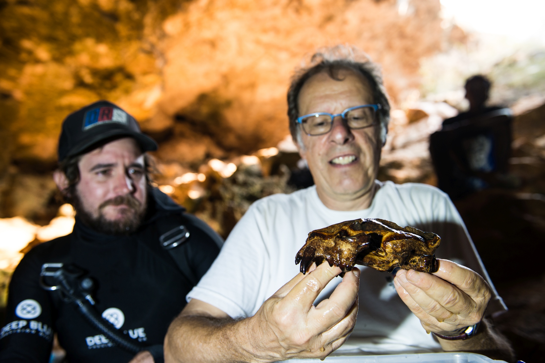 Pushing further in this cave the team moved through a number of small restrictions, only possible to pass through by using sidemount configurations. Although the cave ended in dead end walls, it offered up compensation for the teams efforts in three fully intact and perfectly preserved Cryptoprocta spelea or giant Fossa fossils, an extinct cat like predator as big as the Grey wolf. Potentially with one pair of these fossils identifying the cave as their lair in eons past when the system would have been dry. Working again with the University experts responsible collection was conducted revealing the possibility of new species from the deeper section of the cave.